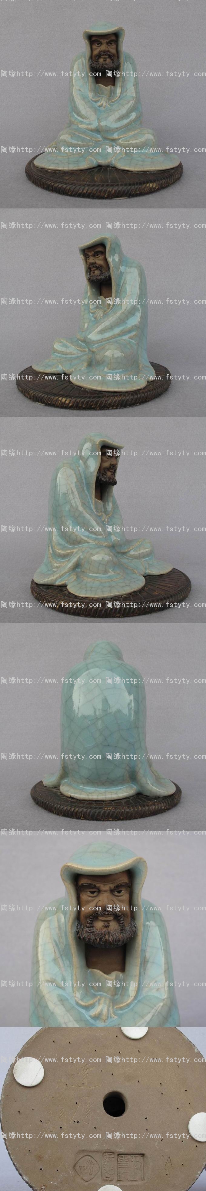 陶瓷艺术品礼品--石湾公仔,特制品《达摩面壁》(绿碧),广东省工艺美术大师--刘雪玲创作作品。