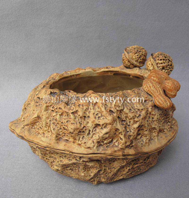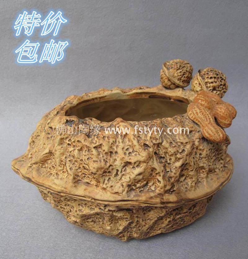 石湾公仔 花生《合桃盆》水养植物花盆花器种植吉庆摆件