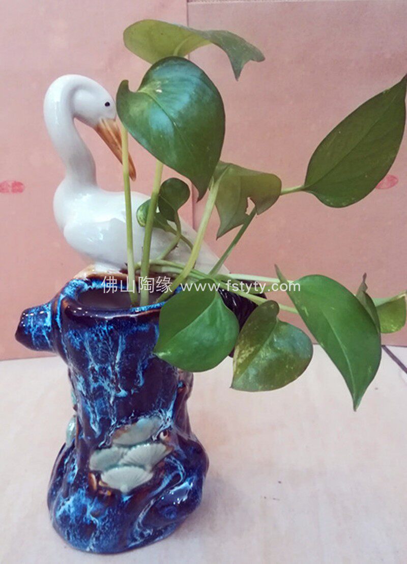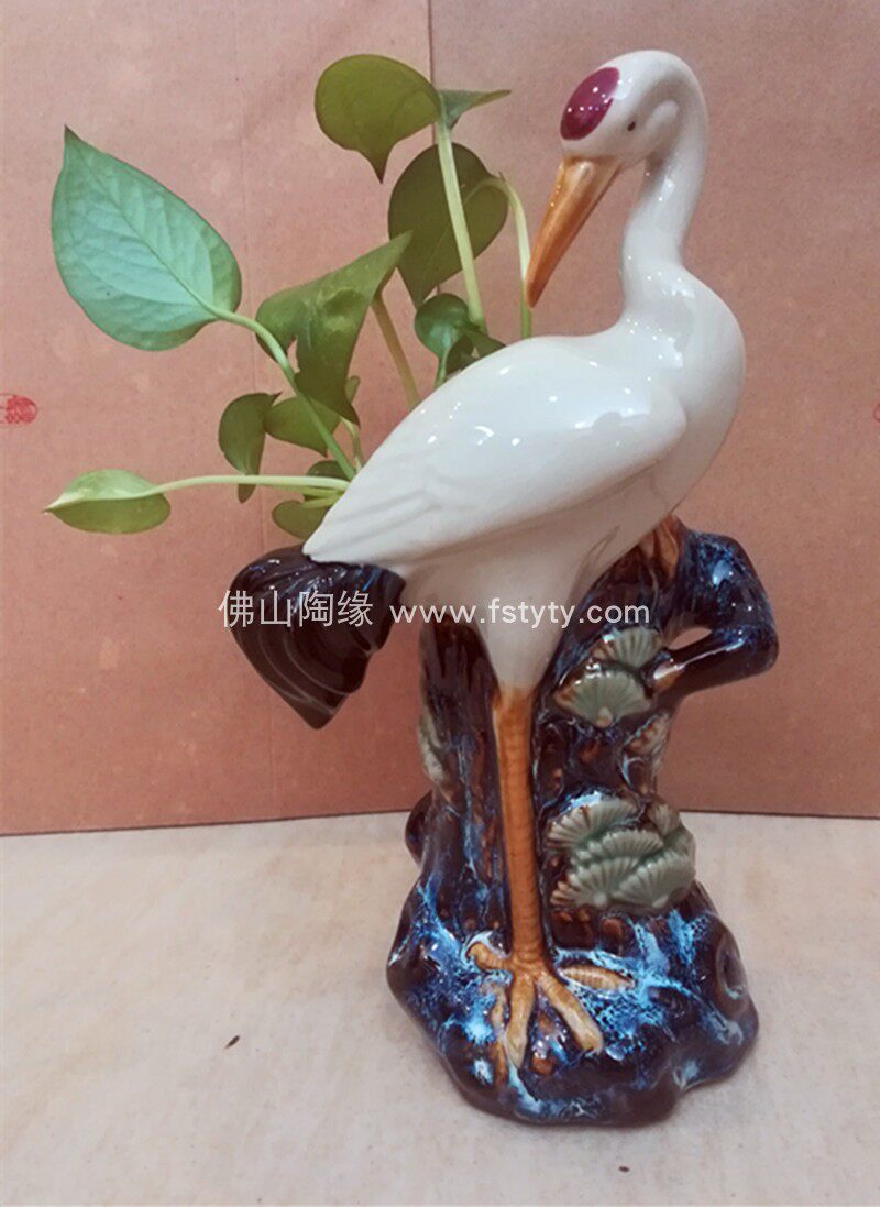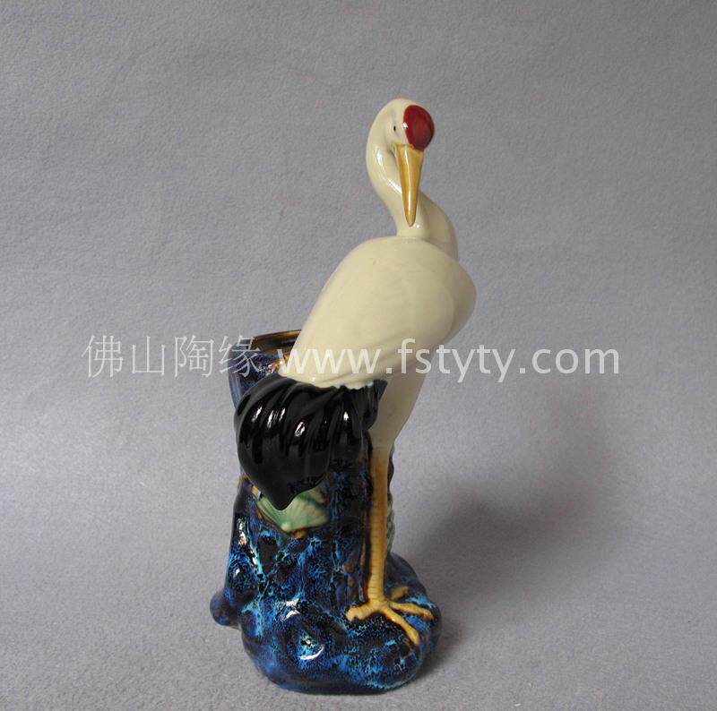 石湾公仔陶瓷陶器《朱顶鹤插》仙鹤水养植物花瓶花盆花器种植实用器皿