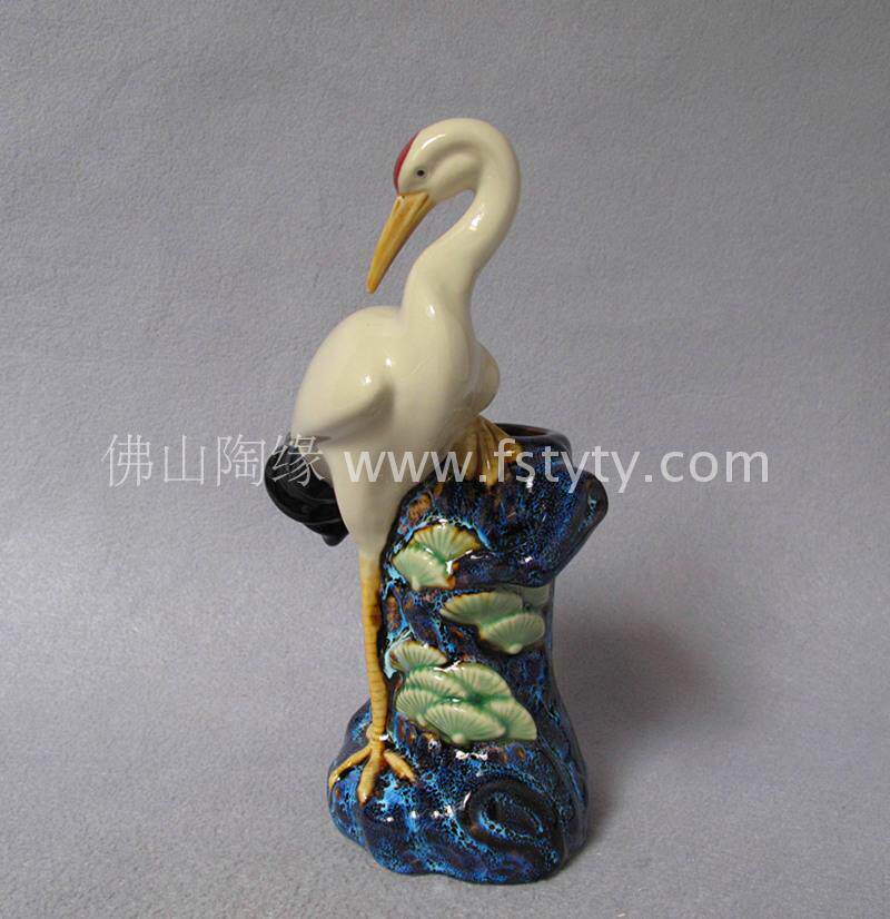 - 作品名称:石湾公仔陶瓷《朱顶鹤插》