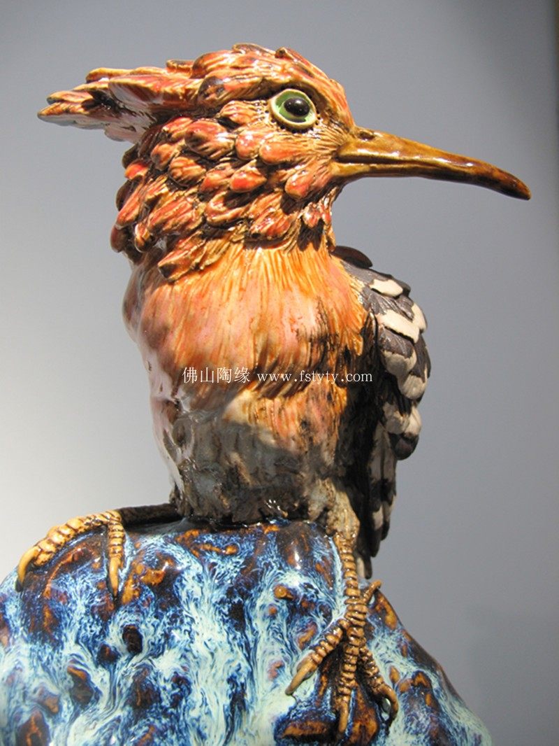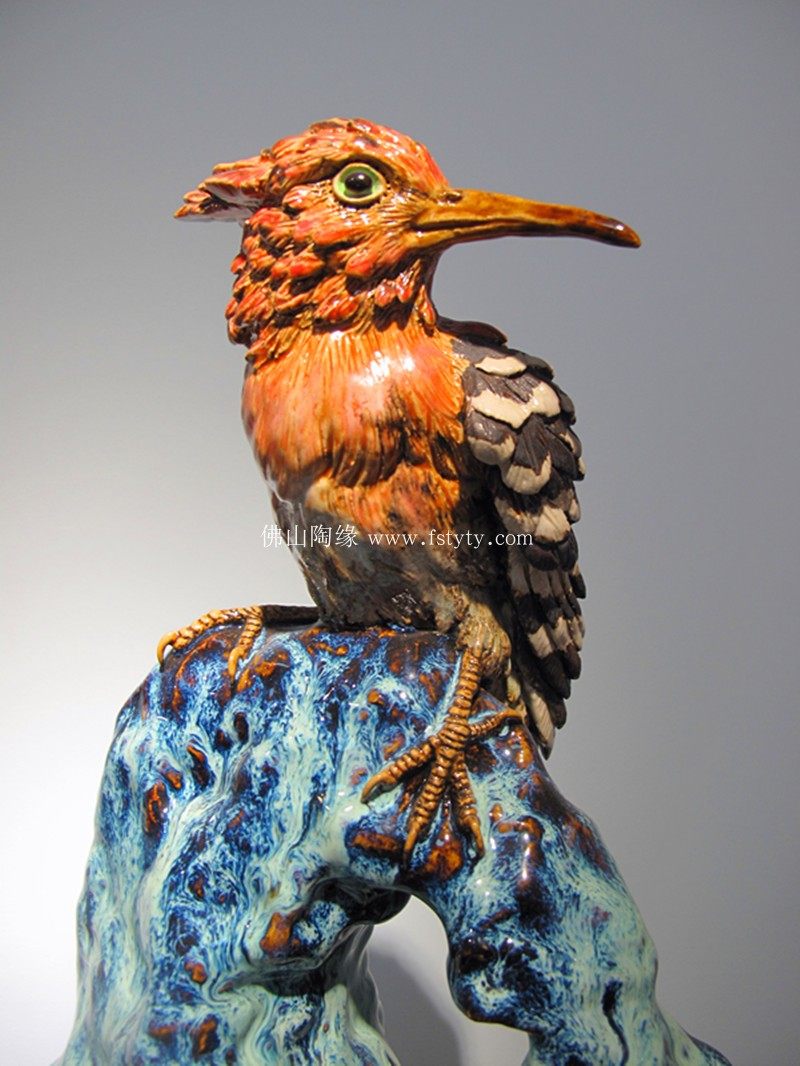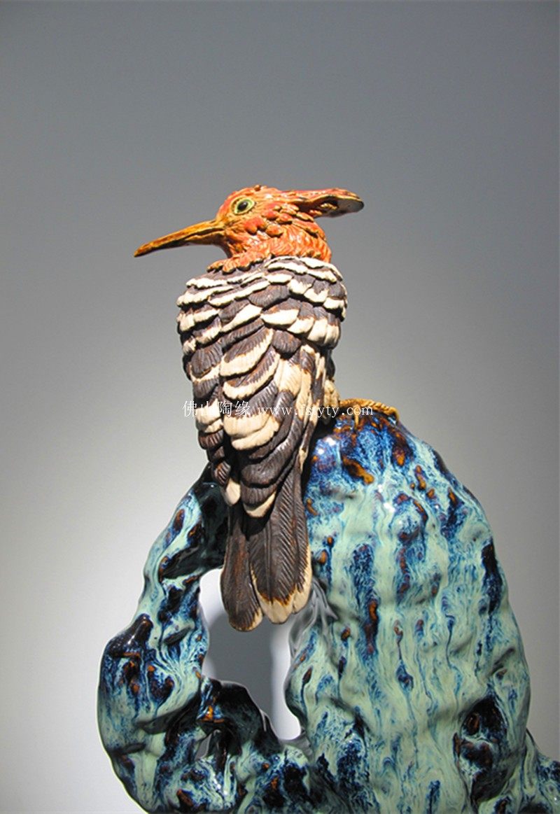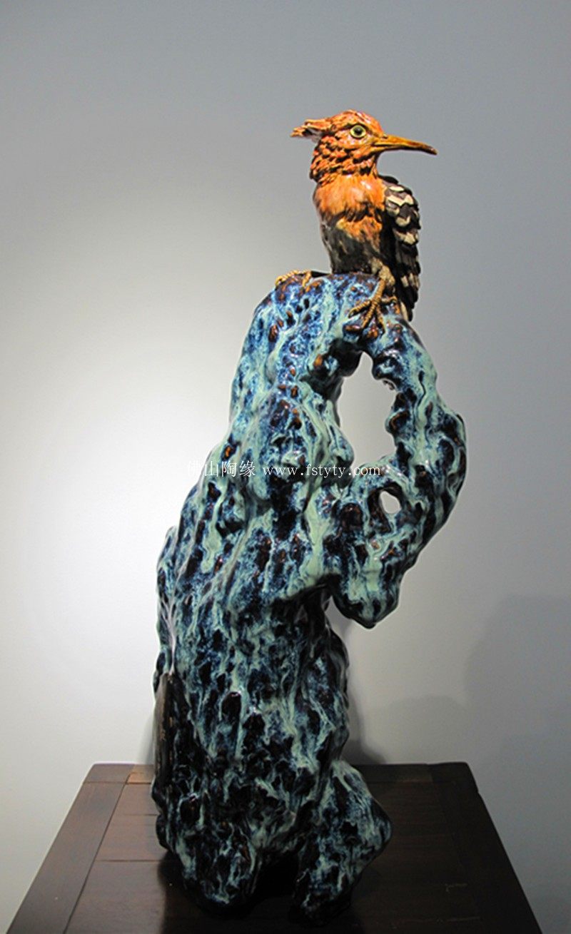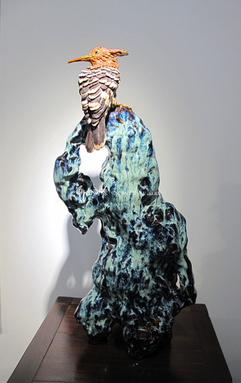 石湾公仔陶瓷艺术收藏礼品动物陶塑翠鸟小鸟石山摆件精品 《揽胜》 何惠娟作品