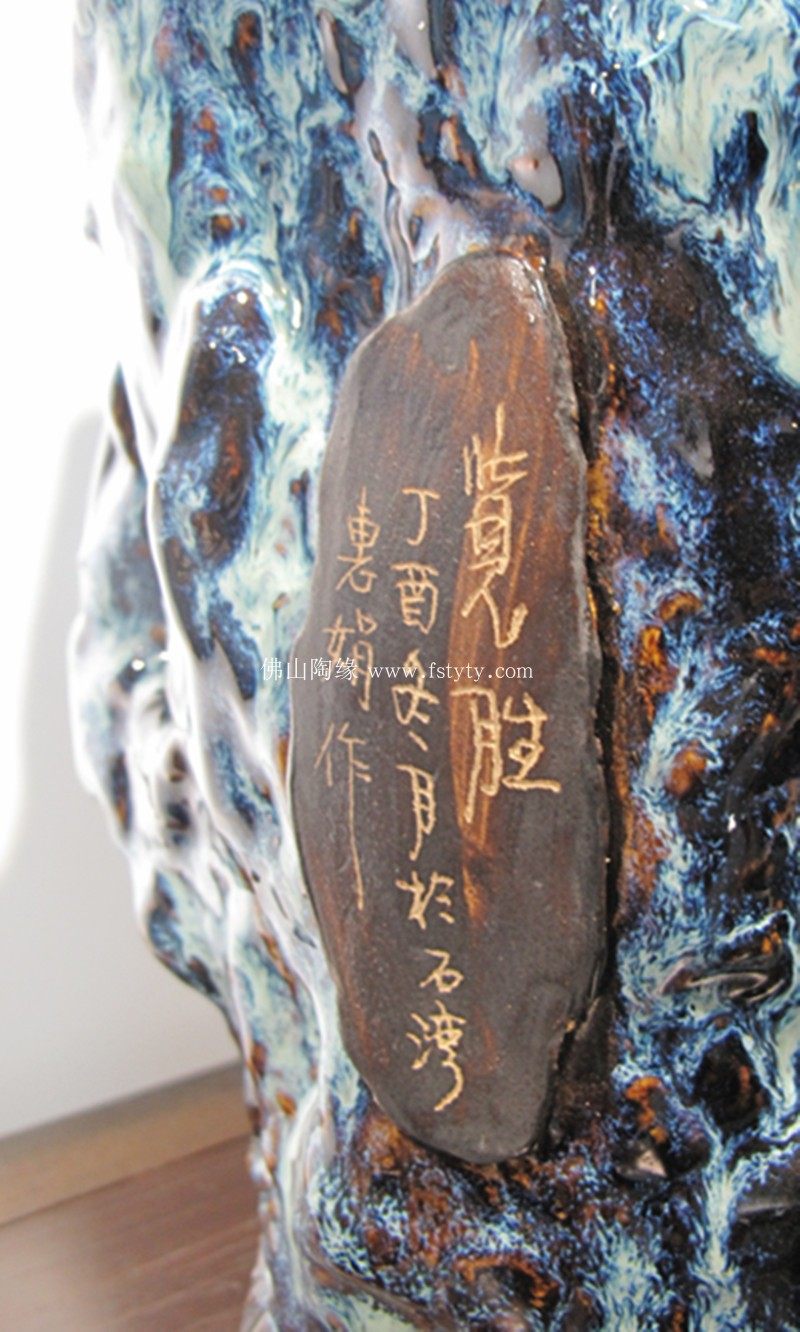 石湾制陶已有5000多年历史,发展于唐宋,极盛于明清,民国后更是有了质的飞跃,特别是艺术陶塑人物趋向成熟,在吸取各方面文化艺术的基础上,逐渐形成了“胎釉深厚朴实,造型生动传神,取材丰富广泛,技法多姿多彩”的艺术风格而誉满天下。