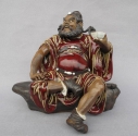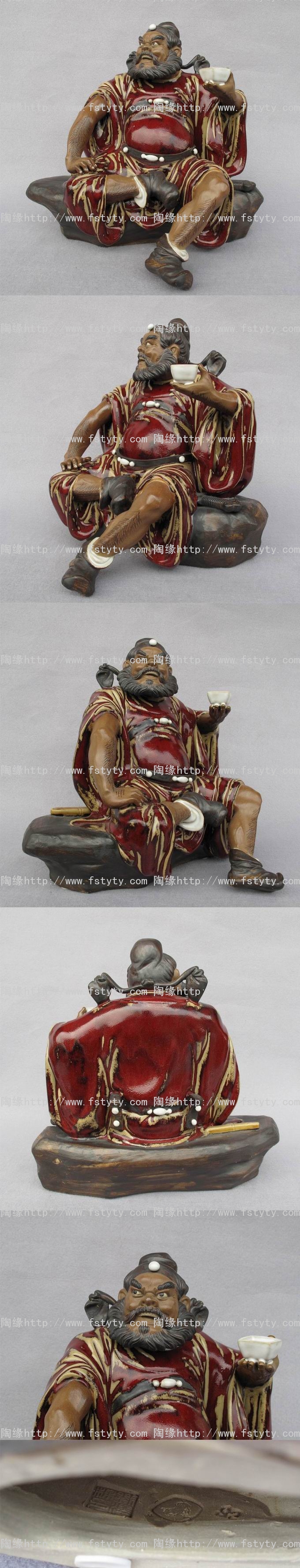 陶瓷艺术品礼品--石湾公仔,高档品《饮酒钟馗》(红釉),中国工艺美术大师--刘泽棉创作作品。