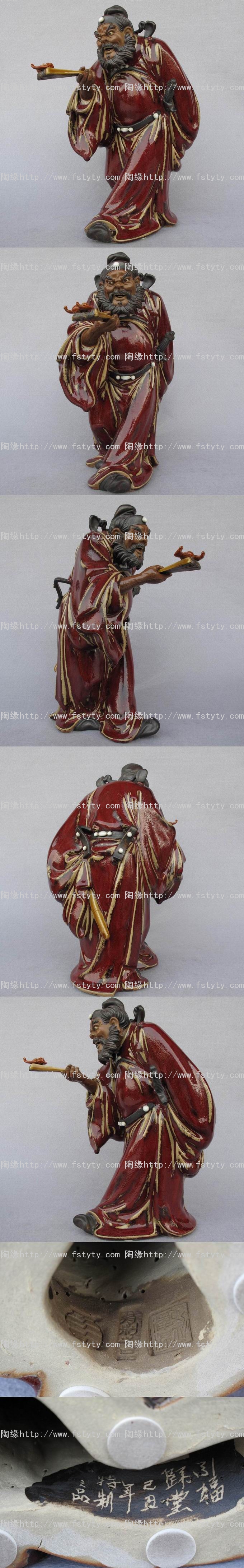 陶瓷艺术品礼品--石湾公仔,特制品《引福归堂》(红釉、小),中国工艺美术大师--刘泽棉创作作品。
