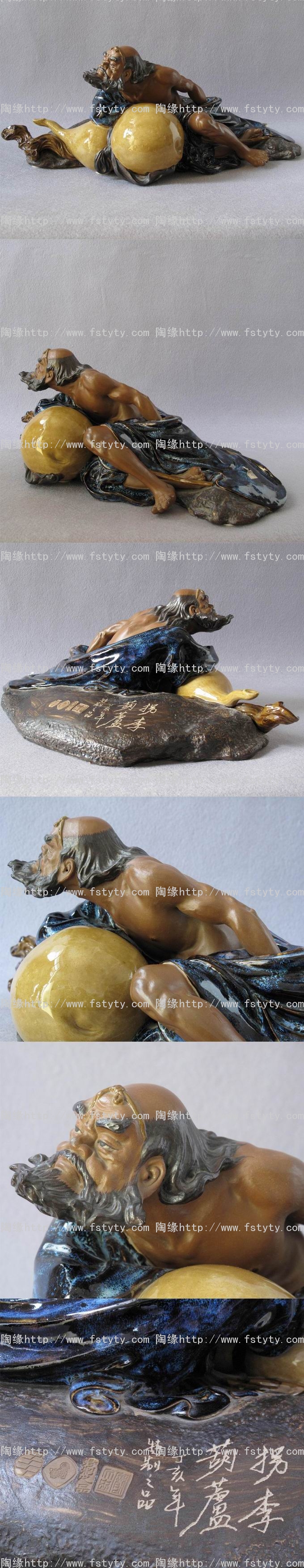 陶瓷艺术品礼品--石湾公仔,特制品《葫芦拐李》,中国陶瓷艺术大师--庞文忠创作作品。