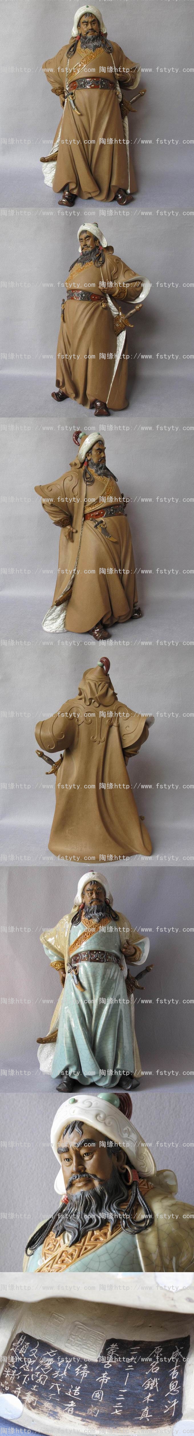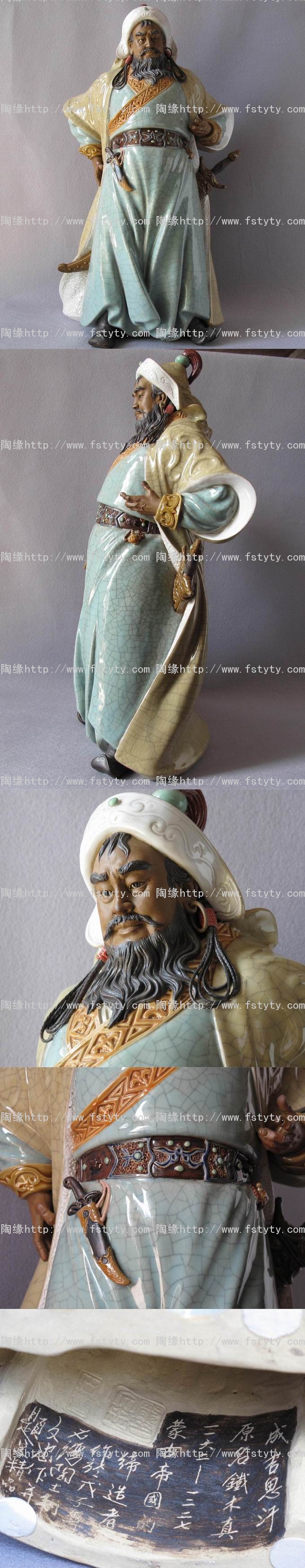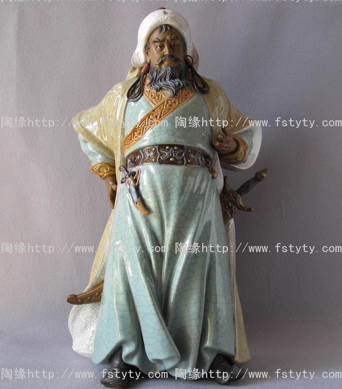 陶瓷艺术品礼品--石湾公仔,限量精品(100尊)《成吉思汗》,中国陶瓷艺术大师--庞文忠创作作品。