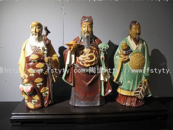 陶瓷艺术品礼品--石湾公仔,限量精品100套《三星拱照》,广东省陶瓷艺术大师--周永锵创作作品。